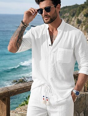 Homme Ensemble de linge Deux pièces Ensemble Chemise Et Set Uni Quotidien Vacances Sortir Band Collar Manche Courte Pantalon Long Été Mode Occasionnel Confortable Vêtement Tenue