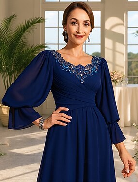 Robe de mariage invitée en A robe formelle robe de soirée robe mère de la mariée manches longues décolleté en V élégante vintage grande taille spandex avec plis et sequins
