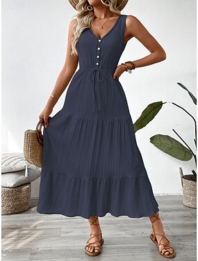 Femmes Robe maxi Robe trapèze Robe d'été Occasionnel Quotidien Coupe régulière Uni Sans manches Col en V Bleu Bleu marine Abricot Été Printemps