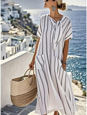 Femmes Robe Midi Robe Décontractée Robe d'été Mode Classique Extérieur Fête Date Coupe régulière Rayé Manche Courte Col en V Bleu Rose Claire Vert foncé Kaki Été