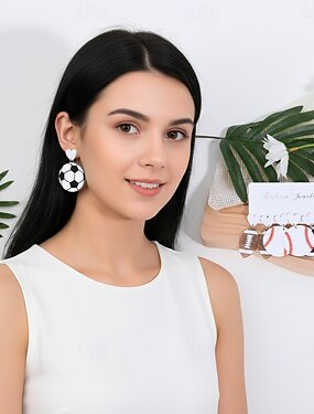 Boucles d'oreilles pendantes en alliage, inspirées des ballons de football, pour femmes. Disponibles en plusieurs modèles, parfaites pour les matchs, les fans de foot et au quotidien.