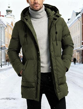 Homme Manteau d'Hiver Doudoune Veste Matelassée Avec Poches Polyester Vacances Tenue quotidienne Date Long Mode Occasionnel Confortable Chaleur Thermique Automne Hiver Couleur Unie / Unie Noir Vert