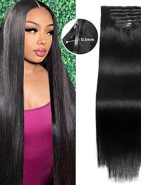 20-24 cheveux raides longs 7 pièces ensemble épais clips sur extensions de cheveux noir naturel