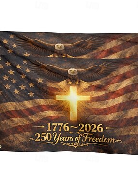 Lot de 2 drapeaux commémoratifs américains pour le 250e anniversaire de l'indépendance des États-Unis (250 ans de liberté), avec un aigle majestueux aux ailes déployées. Bannière patriotique