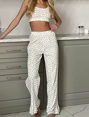Femmes Lingerie sexy Ensemble de Soutien-gorge & Culotte strings & Tangas A Volants Dos nuNightwearPolyester Maison Graphique Couleur Unie Élégant Mode Bleu Ciel Noir Vin Bleu Roi Été Printemps