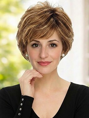 Perruque courte brune coupe lutin perruques cheveux courts avec frange blond mélangé mèches superposées perruque de remplacement de cheveux synthétiques duveteux pour femmes costumes d'Halloween