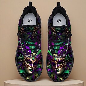 Baskets pour hommes sur le thème des masques de carnaval – un design artistique en similicuir, idéales pour les fêtes de carnaval et les festivals de musique.