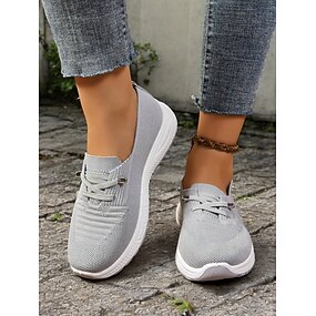 baskets en tricot grises à enfiler pour femmes avec semelle à coussin d'air - chaussures légères et respirantes pour la marche, les voyages et les vêtements décontractés