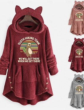 Femmes Sweat à capuche Chat Occasionnel manche longue À capuche Hauts Longs Rue Tenue Quotidienne Rose Claire Vin Gris Automne Hiver