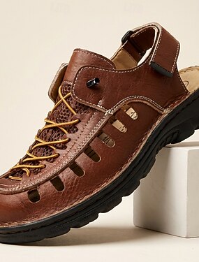 Sandales de pêcheur marron pour homme, à bout fermé, respirantes et confortables, idéales pour les voyages, la randonnée, les vacances d'été, les loisirs en plein air et le quotidien.