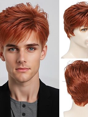Perruque Synthétique Uniformes Costumes de carrière Princesse Bouclé Ondulé Partie médiane Coupe Dégradée Fabriqué à la machine Perruque 12 pouces Orange Cheveux Synthétiques Femme Cosplay Soirée Mode