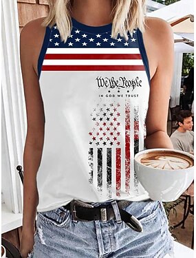 Jour de l'Indépendance Américaine Femmes Haut à œillets Tunique Débardeur Œillet Graphique Drapeau Élégant Classique Sans manches Asymétrique Hauts Réguliers Occasionnel Quotidien Bleu Rouge Ét