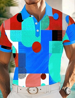 Homme Polo Vacances Rue Col Rabattu Manche Courte Vacances Géométrique Bloc de Couleur Boutons Été Coupe Slim Bleu Clair Bleu Jaune Vert Polo