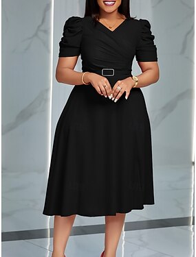 Femmes Robe Midi Robe noire Robe de Soirée Élégant Mode Moderne Bureau Cocktail Coupe régulière Uni Manche Courte Col en V Bleu Noir Rouge Vert Printemps Automne Hiver