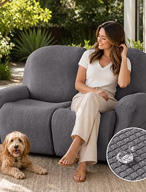 Housses de fauteuil inclinable en jacquard, housses de chaise longue, housses de canapé, ensemble de 4 pièces, antidérapantes, inclinables avec poches de rangement, protection de meubles pour le salon