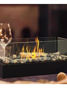 Foyer de table - petite cheminée de table en acier inoxydable plus sûre avec pavés pour les dîners, machine à s'mores