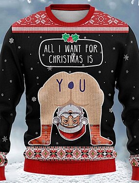 pull de noël moche pulls drôles pour hommes pull en tricot imprimé père noël pull en tricot pull du réveillon du nouvel an extérieur quotidien vacances manches longues col rond noir automne hiver s m