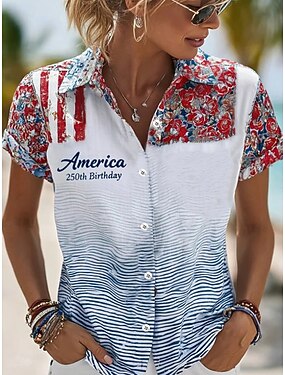 T-shirt pour femmes jour de l'indépendance américaine à manches courtes graphique drapeau vintage élégant décontracté col régulier hauts quotidiens bleu clair été printemps