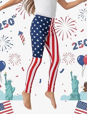 Fille 3D Drapeau Rayé Pantalons Leggings Impression 3D Printemps Automne Streetwear Basique Collants Enfants 4-12 ans Occasionnel Quotidien Extérieur Coupe régulière