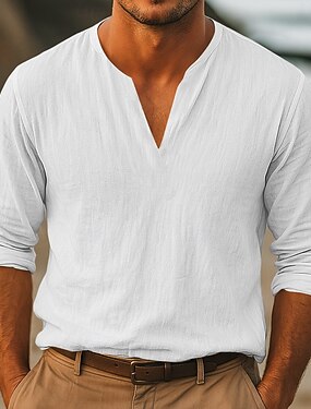 Homme Chemise en lin T-shirt Chemise à Manches Longues manche longue Col en V Été Printemps & Automne Couleur Unie ancien Mode Occasionnel Col en V Pur Occasionnel Quotidien Travail Noir Blanche bleu