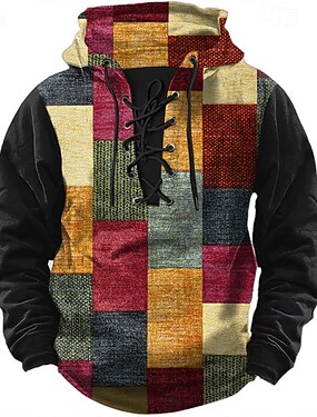 Homme Géométrique Sweats à capuche Mode Frais Quotidien Occasionnel manche longue À capuche Bleu Noir Marron Vert Cordon de serrage Patchwork Automne Hiver Designer S M L XL XXL XXXL