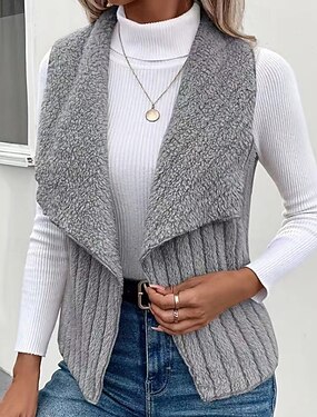 Femmes Gilet Chaud Confortable Fermeture éclair Occasionnel Uni Vacances Rue Occasionnel Tenue quotidienne Régulier Col Rabattu Coupe régulière Sans manches Vêtements d'extérieur Noir Blanche Bleu