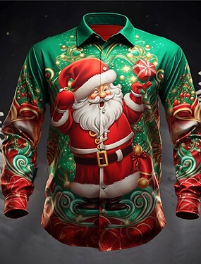 chemises imprimées père Noël pour hommes, tenue décontractée de tous les jours, sortie en automne&chemise d'hiver à manches longues en tissu extensible dans les 4 sens, blanche, vert armée,