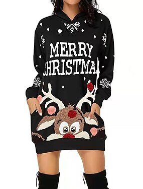 Renne Rodolphe Pull de Noël Robe de Noël Pull Sweat à capuche drôle de Noël Femmes Noël Spéciale Impression 3D Motif Adulte Noël Carnaval Mascarade Noël Vacances Soirée Robe