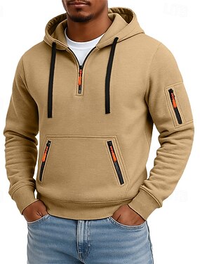 Homme Sweat à capuche Sweat à capuche quart zippé Sweat à capuche tactique Noir bleu marine Kaki Gris Clair Gris foncé À capuche Uni Patchwork Bloc de Couleur Multi-poches Sport & Loisir Occasionnel