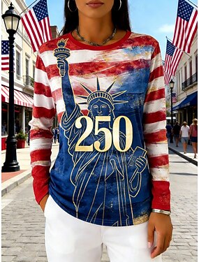 Jour de l'Indépendance Américaine Femmes T-shirt Imprimé Graphique Rayé Mode Basique Classique manche longue Col ras du cou Hauts Réguliers Quotidien Sortir Week-end Rouge Été Printemps Automne 250th