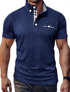 Homme Polo Occasionnel Affaires Revers Manche Courte Mode Moderne Plaid Boutons Respirable Été Printemps Bleu Noir Vin Bleu Roi Vert Kaki Polo
