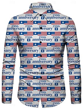 250e anniversaire des États-Unis Rétro Vintage Années 1970 Chemise Chemise Aloha Manches longues Hippie Géométrique Ethnique Déguisement Homme Mascarade 4 Juillet Soirée Jour de l'indépendance Adulte