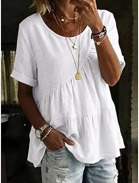 Femmes Chemisier Évider Uni ancien Tropical Élégant Manche Courte Col ras du cou Hauts Réguliers Quotidien Fête Sortir Noir Rose Claire Violet Été Printemps Automne Hiver