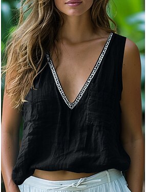 Femmes Débardeur Patchwork Uni Mode Élégant Classique Sans manches Col en V Hauts Réguliers Quotidien Sortir Week-end Noir Rose Claire Gris Été Printemps