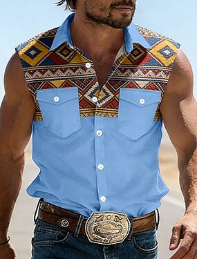 Homme Formes Géométriques Ethnique Chemise Western Chemise de cow-boy T-shirt sans manches Sans manches Style Western Vintage Rétro Extérieur Travail Décontracté Été Printemps Col Rabattu Impression