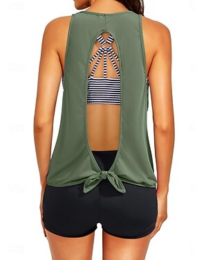 Tankini femme 3 pièces maillot de bain shorts contrôle du ventre taille haute slim dos nu vacances plage géométrique graphique en U sans manches