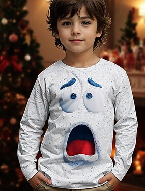 Noël Garçons 3D Graphique Dessin animé T-shirt manche longue Printemps Automne Mode Basique Enfants 4-12 ans Col Rond Extérieur Occasionnel Quotidien Coupe régulière