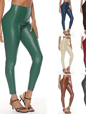 Femmes Pantalon en cuir Pantalons Short anti-frottements ancien Mode Occasionnel Longueur cheville Taille Moyenne Couleur Unie Élastique Quotidien Extérieur Rue Gris Mat Noir brillant Automne Hiver