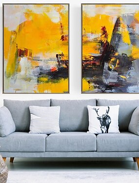 Peinture à l'huile abstraite peinte à la main en deux parties, art mural fait à la main, art abstrait moderne et minimaliste, art mural bleu acier clair, texture acrylique, grande toile encadrée,