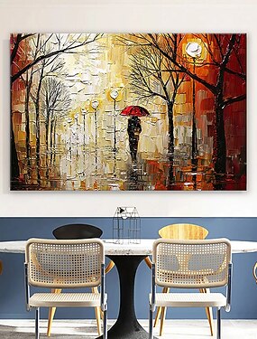 peinture à l'huile 100% fait main peint à la main art mural sur toile personnes avec des parapluies se promenant le long du chemin forestier paysage abstrait moderne décoration de la maison décor