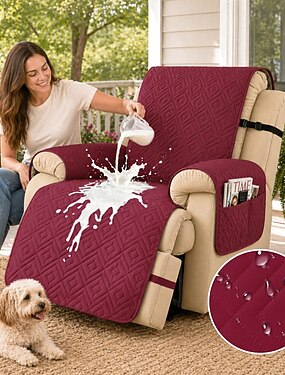 Housse imperméable pour canapé et fauteuil inclinable avec appui-tête, sangle élastique et poche de protection pour accoudoirs. Antidérapante, elle protège l'appui-tête des fauteuils et canapés inclinables et autres meubles de salon. Durable et facile à n