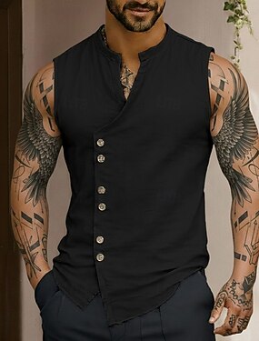 Homme Chemise Chemise en lin Chemise d'été Chemise de Plage Chemise vintage T-shirt sans manches Uni Occasionnel Quotidien Noir Blanche Bleu Ciel Kaki Sans manches Col mandarin Été Printemps Vêtement