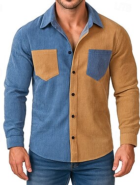 Homme Chemise Chemise Décontractée Chemise en velours côtelé Chemise Boutonnée Jaune Vert Kaki manche longue Uni Col Rabattu Occasionnel Quotidien Bloc de Couleur Vêtement Tenue Mode Streetwear