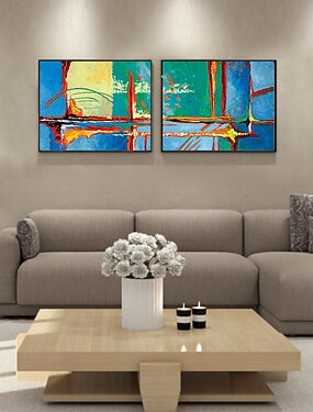 Peinture à l'huile faite à la main peinte à la main art mural abstrait ensemble de 2 pièces peinture sur toile décoration de la maison décor cadre tendu prêt à accrocher