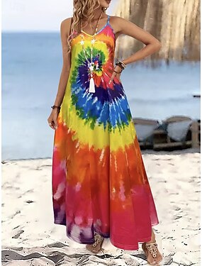 Femmes Robe maxi Robe d'Été Robe trapèze Robe Nuisette Vacances Occasionnel Plage Sortir Coupe régulière A Ombre Graphique Teinture par nouage Sans manches Col en V Bretelles spaghetti Orange Ét