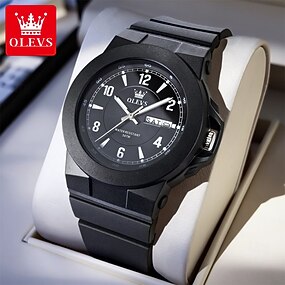 OLEVS Hommes Montre à quartz Créatif Minimaliste Luxe Grand cadran Lumineux Calendrier Date Date Semaine Gel de silicone Suivre