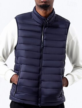 Homme Gilet matelassé Gilet Vacances Quotidien Date Mode Occasionnel Automne & Hiver Avec Poches Polyester Chaud Confortable Couleur Unie Fermeture éclair À capuche Coupe régulière Noir bleu marine
