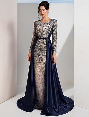 Robe de invitée de mariage longueur sol en A robes formelles robe de soirée robe de mère de la mariée à manches longues décolleté rond élégante vintage luxueuse avec des cristaux sequins