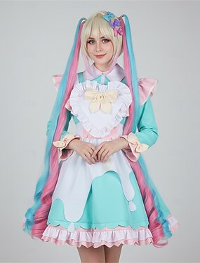 Tenus de Soubrette Manga Robe Tenues Bal Masqué Costumes de Cosplay Halloween Salon de l'Anime Perruque Costume Pour Femmes Adulte
