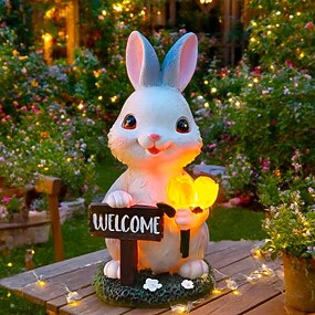 Lampe solaire en résine représentant un lapin, étanche, pour jardin, pelouse, terrasse ou allée. Décoration lumineuse de Pâques pour Pâques.